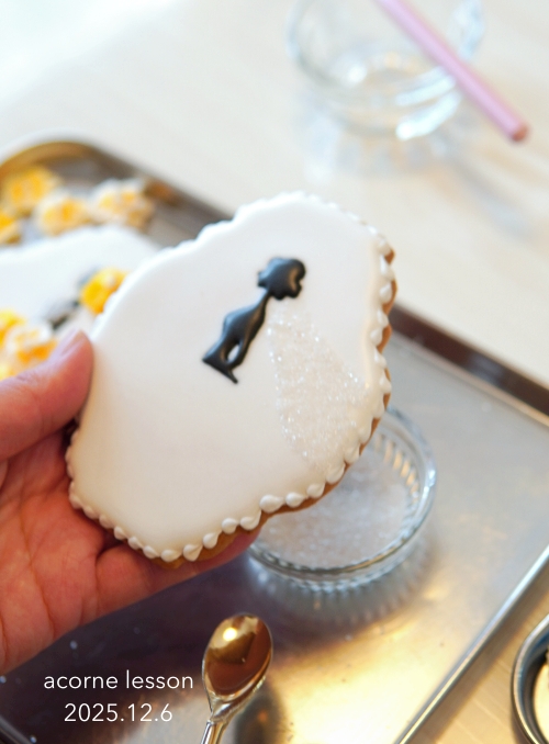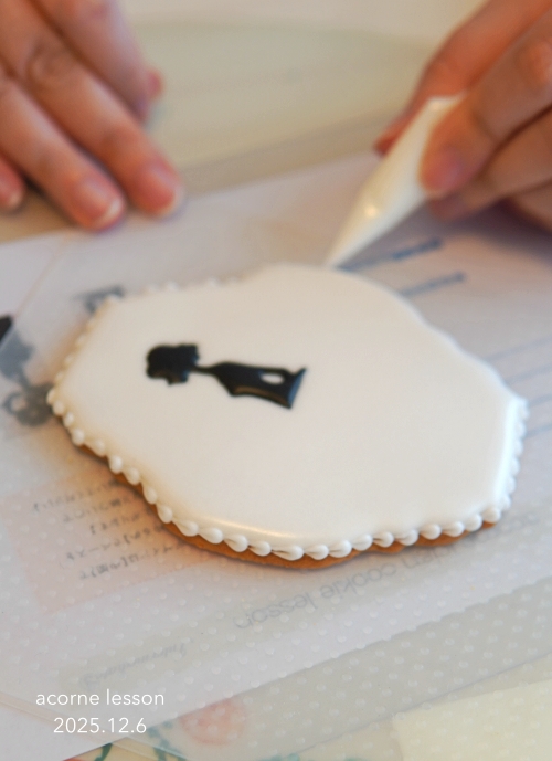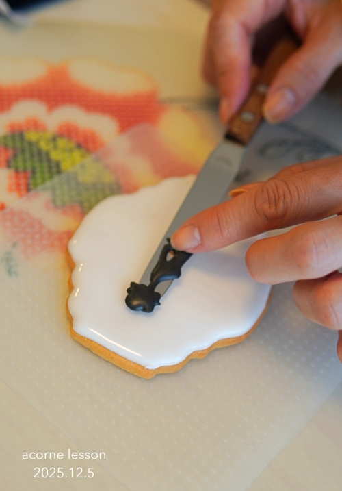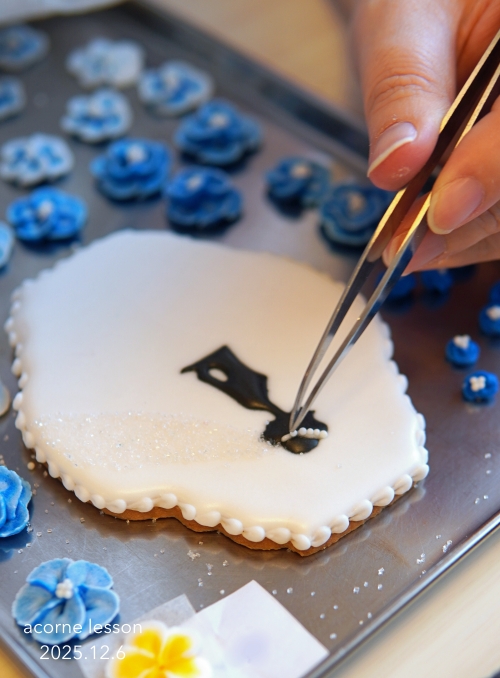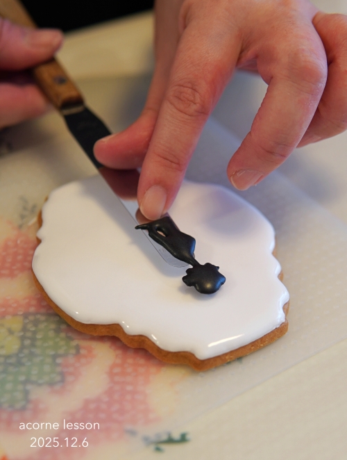 乾いているアイシングの上ならここまで緊張しませんが、塗り立てアイシングなので一発勝負!