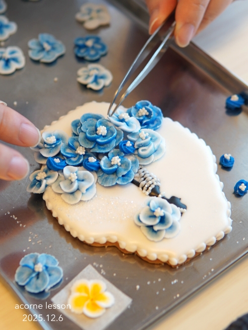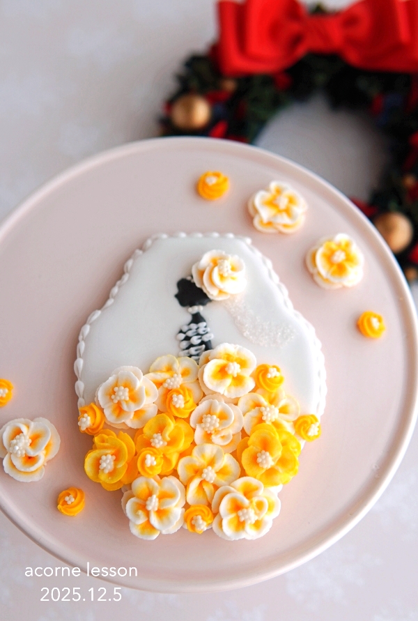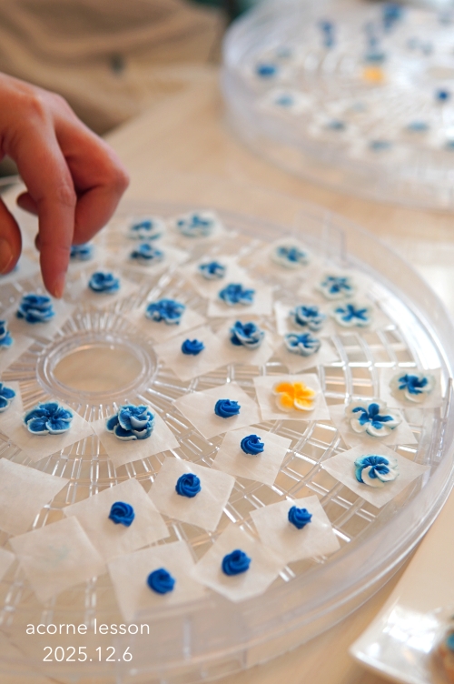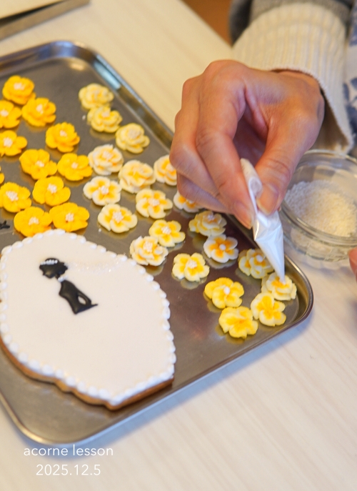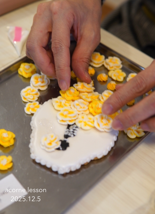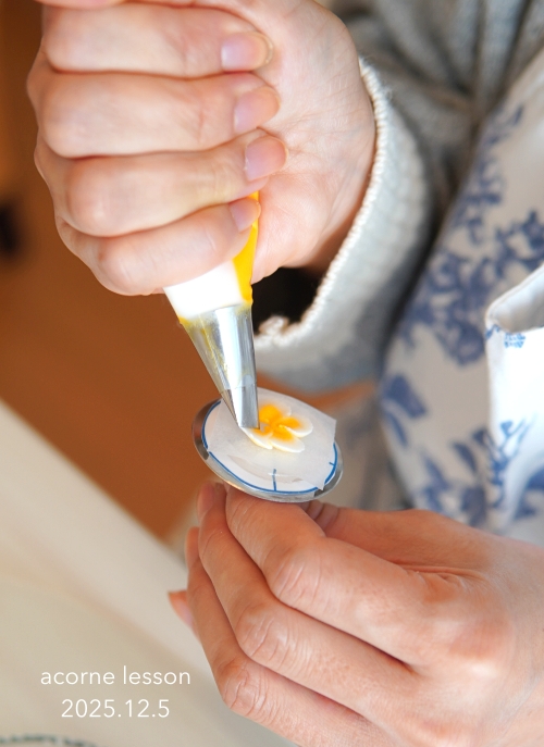 アイシングの準備ができたら、いよいよお花絞りスタートです。