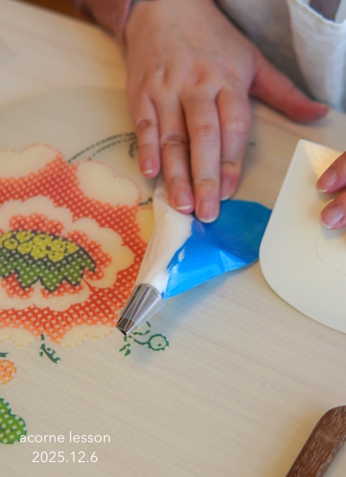3回目は、お花絞りがメインのレッスンですが、まずは土台作りからスタート。