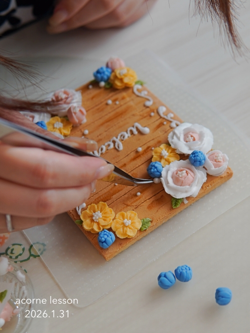 1/31【レッスンレポ】上級コース4回目はバラ絞りとクッキーボード作り