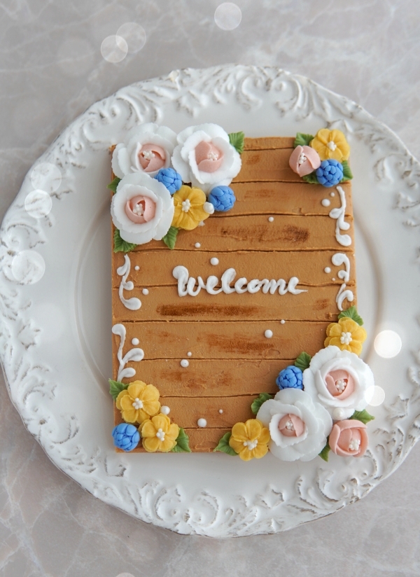 全てのお花が完成したら、先ほどのクッキーボードにメッセージを描いていきます。