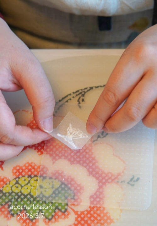 ご自分で作っていただいたバラのレースピースをはめ込みます。