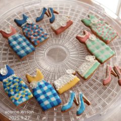 今日はNさんにご依頼いただいて、プライベートレッスンを開催しました。以前ご紹介した「安産祈願」クッキーのデザインを気に入ってくださり、「ぜひ同じデザインで」とご希望くださいました。最初の安産祈願クッキーのご依頼は妹さんへのプレゼントでしたが、今回はお嫁さんへのプレゼント。 Nさんとのお付き…